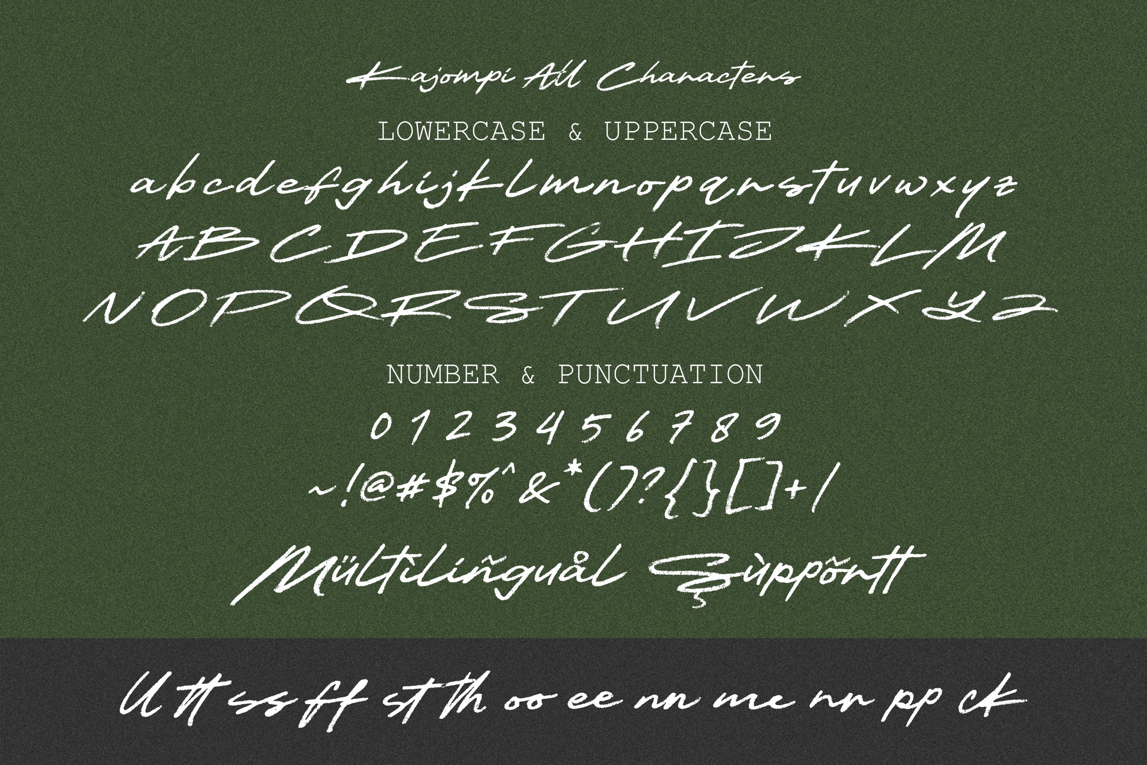 Introducing Kajompi, a natural handwritten font designed to bring warmth and authenticity to your creative projects. Every stroke feels organic and effortless, giving your designs a truly personal touch.